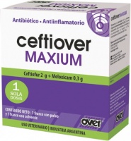 CEFTIOVER MAXIUM es un antibiótico inyectable de acción prolongada que combina una cefalosporina de 3ª generación (ceftiofur) y un AINEs (meloxicam). Esta combinación aporta un amplio espectro terapéutico por su acción antibiótica, antiinflamatoria, analgésica y antipirética.