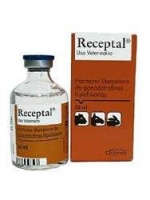 Trastornos de la fertilidad de origen central y ovárico. Inducción de la ovulación y mejora del porcentaje de preñez a la inseminación en vacas, yeguas y conejas. Con referencia a cada una de las especies, han de citarse las indicaciones siguientes: Vaca: Mejora del porcentaje de preñez: en la inseminación artificial y tras la sincronización de celo. Al respecto, ha de señalarse especialmente la mejora del 11 % del porcentaje de preñez tras el primer servicio estadísticamente comprobado y el número de ovulaciones a destiempo significativamente menor después de la aplicación de Receptal®. Las experiencias reunidas en el empleo sistemático de Receptal® en el primer y segundo servicio, ya han confirmado repetidas veces que el porcentaje de preñez, puede mejorarse netamente en un 6 a un 17%, según la disposición del ensayo y el material de pacientes. Quistes foliculares, con y sin síntomas de ninfomanía. Aciclia. Ovulación retardada. Atresia folicular. Profilaxis de trastornos reproductivos por inducción temprana del ciclo después del parto. Este tratamiento está indicado especialmente en vacas con retención de placenta o afectadas con frecuencia de quistes foliculares. Yegua: Alteraciones quísticas de los ovarios, con y sin celo prolongado o permanente. Aciclia. Inducción de la ovulación. Fijación del momento de la ovulación y monta. Mejora del porcentaje de preñez. Celo prolongado o permanente. Coneja: Inducción de la ovulación en la inseminación después del parto. Mejora del porcentaje de preñez.
